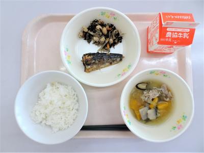 ごはん、いわしのみぞれ煮、ひじきの炒め煮、能登の夏豚汁、牛乳