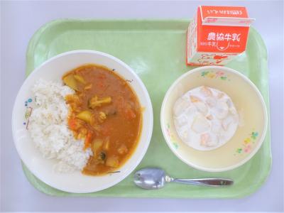 ミルクロール、オムレツ、切干のごまマヨ和え、アスパラシチュー、牛乳