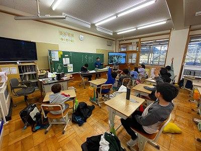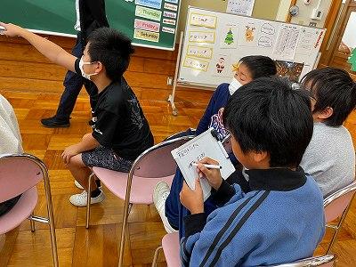 5年生外国語の授業を見に行くと、サンタクロースが授業をしていました?なぜか、児童はいつも通りに、楽しく授業を行っていました・・。