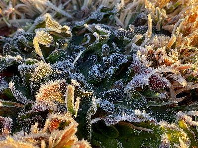 普段は目にもとめない雑草でも、霜のおかげでキラキラ輝いて見えます。児童の吐き出す息も、笑顔とともにエネルギーをもらえるのは不思議です・・。