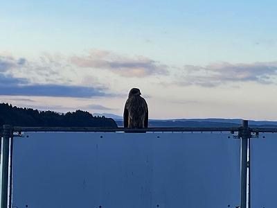 22日(月)の登校指導は、トンビも参加してくれました。10分以上バスが来るまで、登校してくる児童を見守り続けてくれました・・。