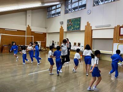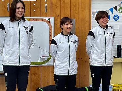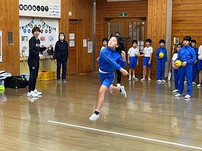 本日、全日本ハンドボール選手権を終えたばかりの、ハニービー石川の3選手が3・4年生にハンドボールを教えに来てくださいました。