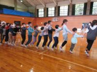 はじめに5・6年生が企画した遊びの「じゃんけん列車」や「ぐるぐる鬼」のゲームで1年生と一緒に楽しく遊びました。プレゼント渡しでは6年生から1年生に、メッセージカード入りの折り紙の箱がおくられました。自己紹介では1年生がなまえと好きなものを、前に出て紹介してくれました。好きなものの中に、意外なものがあったりして会場の笑いをさそっていました。