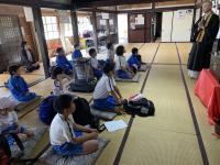 本日、「ふれあい遠足」に行きました。今年度は「中居コース」を歩きながら、「ふるさと再発見」を目的として、スタンプラリー形式で「さとりの道」散策をしました。子どもたちは、途中の寺院やチェックポイントでクイズや、瞑想、鐘つきなど様々なミッションに挑戦し、無事にクリアすることができると、嬉しそうにシール貼ってもらっていました。