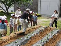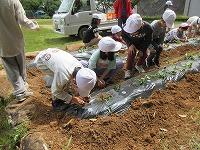 地域の野菜名人の滝谷さんをゲストティーチャーにお招きして、1・2年生がさつまいもの苗植えを体験しました。やさしく教えていただきました滝谷さん、お忙しい中ありががとうございました。