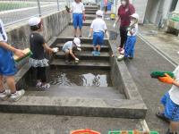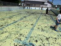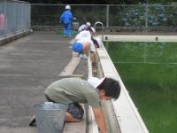19日にはいよいよプールの水を抜いて中の掃除です。これにもお手伝いをしてくださる保護者の皆様、ありがとうございます。