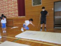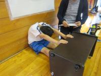 今回は反復横跳び、長座体前屈、上体起こし、立幅跳び、シャトルランの5種目を測定しました。シャトルラン以外の種目については縦割り班にわかれてそれぞれ測定しました。シャトルランについてはいくつかのグループにわかれ、みんなで応援しながら結果を見守りました。