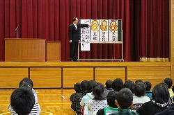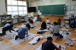 1~2年生は、硬筆。3~6年生は、毛筆で練習の成果を出し合いました。