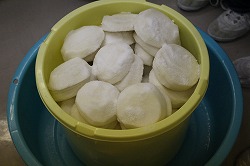 午前中、5年生は、先日下漬けしたかぶら寿司の本漬け作業を行いました。