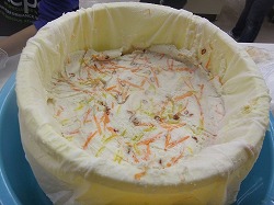 今日の作業は、下漬けです。(切る・皮をむく・塩もみ・重石をのせる)