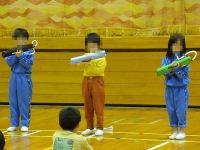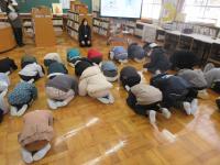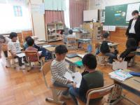 音楽の授業で勉強した歌と鍵盤ハーモニカの演奏をきかせてくれました。その後、国語の時間に勉強した「くじらぐも」の音読劇についても披露してくれました。1年生のかわいらしくパワフルな歌&演奏と音読劇から、たくさん元気をもらいました。