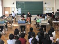 勝井さんは,それぞれの曲やチェロの解説をしてくださいました。「木星」を5,6年生が合奏したのですが,音楽会のために50回以上練習を重ねたそうです。最後の「believe」の全員合唱で,会場の音楽室は一体感に包まれ,本物に触れる満足した時を過ごしました。
