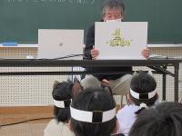 学校評議員でもある岡本さんをゲストティーチャーとしてお招きして、2・3年生を対象に穴水町の民話紙芝居がありました。
