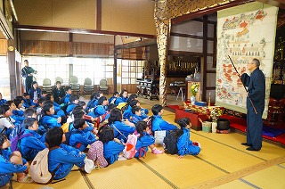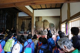 今年度は、「諸橋コース」を歩きながら「ふるさと再発見」をする内容でした。見学コースは、明泉寺、諸橋稲荷神社、太夫の森・弁天島、諸橋公民館です。見学場所では、里ナビさんの諸橋様、高様に詳しく説明していただきました。また、諸橋公民館では、里ナビさんによるお話会もとても楽しむことができました。子ども達は、改めてふるさと諸橋の良さを再発見できて大満足な1日となりました。