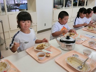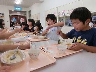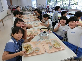 1~4年生は、能登少年自然の家へ行ってきました。カヌーやユーホーボートでは、仲間と協力してとても上手に漕ぐことができました。昼食のカレーライスは、好評で3杯おかわりした人もいたそうです。水に濡れた人もいましたが、皆元気にいっぱい活動できました。