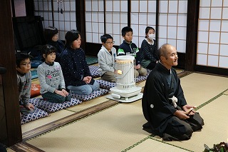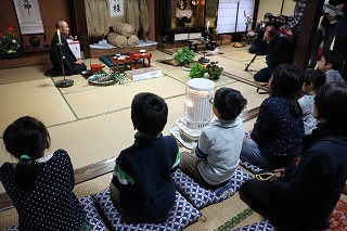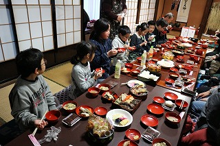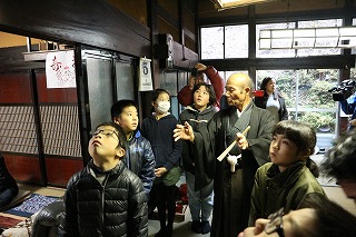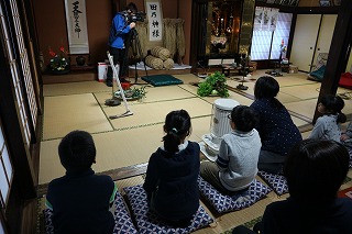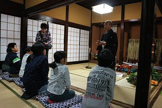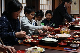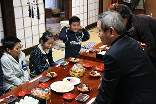 午後、4年生6名は、あえのこと(重要無形民俗文化財)を見学しました。ふるさと教育の一つで、校区で、見学できてとても幸せだと思います。 あえのことは、一年間の収穫の感謝と来年の五穀豊穣を祈願するお祭りです。苗代田から「田の神」を自宅に招く様子を子ども達も真剣なまなざしで見守りました。間近に伝統文化にふれ、地域の良さを感じたことでしょう。 最後に、子ども達もあえのこと料理を堪能させていただきました。