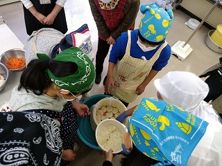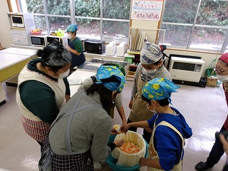 午後、かぶら寿司の本漬け作業を5年生が親子で行いました。説明をしっかりと聞いてすべての作業をスピーディに進めることができました。 今年初めて親子行事として取り組みました。親子で協力する場面も多く、子ども達の頑張る様子も見て頂きよかったです。