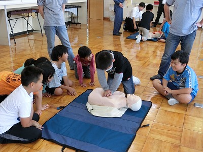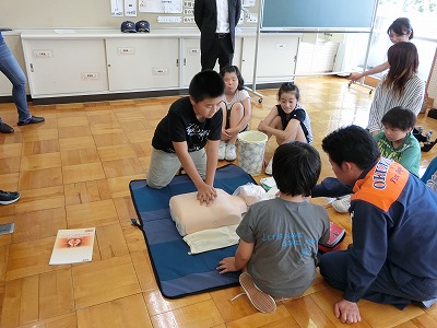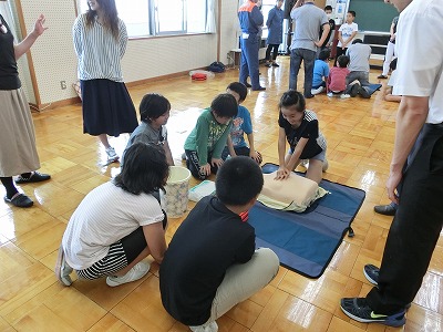 今年度は、親子でAEDの講習会を実施しました。大人でもいざとなると、緊張します。こどものうちから、実技講習を受講しておくことは、大変意義深いものだと思います。5年生は、大変立派な態度で講習を受けていました。