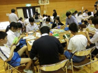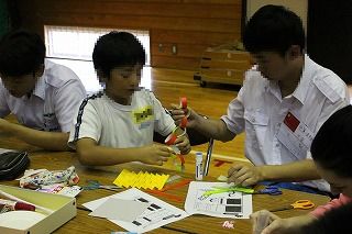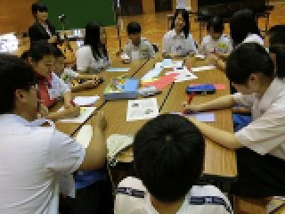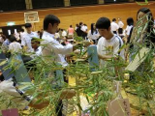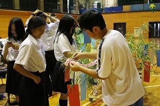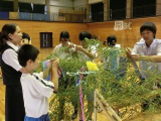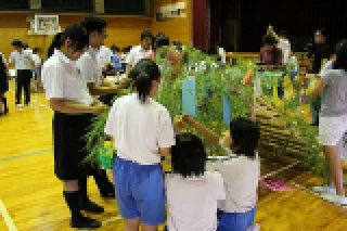 航空学園の留学生の皆さんと交流会をしました。出身は、タイ、中国、韓国、ミャンマー、トンガ、モンゴル、ベトナム、フィリピンほかです。ちょうど七夕でしたので、班ごとに七夕飾りを作って飾ったり、合唱を披露しあったりしました。国がちがったり言葉がちがってもすぐに打ち解けて交流することができました。子ども達は、大人が思うほど抵抗なくすぐに仲良くなりました。楽しい交流会となりました。