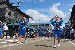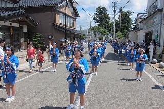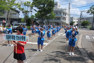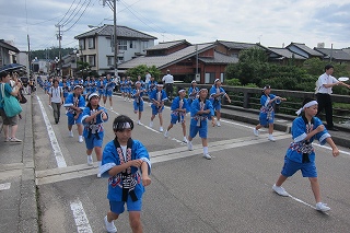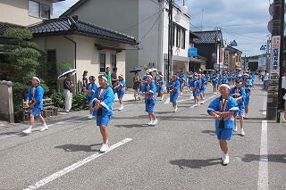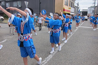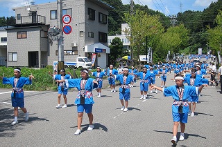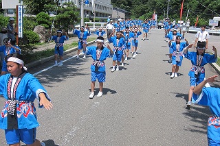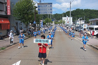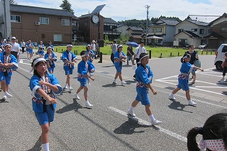 穴水音頭を役場前~警察署まで踊りました。暑い日となりました。子ども達は、毎日練習した甲斐あって大変上手に踊りきることができました。 保護者の皆様には、送迎や沿道での応援で、暑い中、ご協力いただきありがとうございました。お陰様で、全員が最後まで踊ることができました。