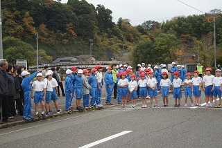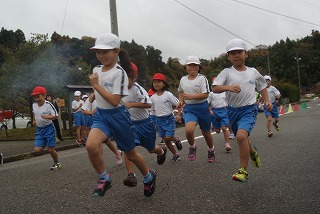 天気:曇り、気温:20度、風速:1mという絶好のマラソン日和でした。沿道には、保護者や地域の方々に多数応援して頂きました。お陰様で、参加児童は、全員見事に完走することができました。