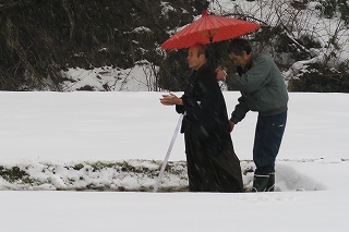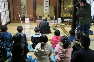4年生があえのこと見学に行ってきました。年末に招いた“田の神様”を田んぼに送り出す「田の神送り」を見学させていただきました。子ども達は、真剣に家主さんの一挙一動を見守っていました。 奥能登に伝わる伝統行事を間近に見ることができ子ども達は大変貴重な体験になりました。