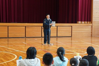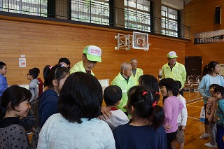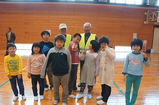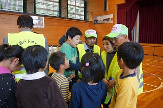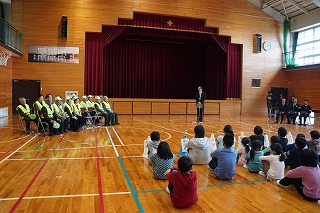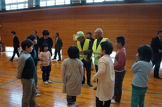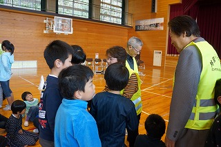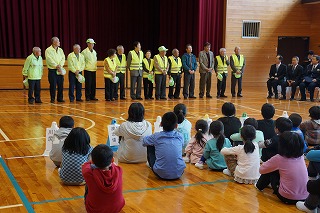対面式では、警察署の方からは交通安全と防犯についてのお話があり、「いかのおすし」の確認をしました。次に、見守り隊代表の方から子ども達へのメッセージをいただきました。そして、児童を代表して6年生が、日頃の感謝とお礼の言葉をお伝えしました。 最後に、見守り隊の皆様と子ども達が地区同士で集まり自己紹介をして交流しました。見守り隊の皆様、今年度も51名の子ども達をよろしくお願い致します。