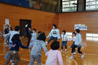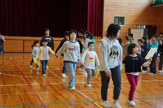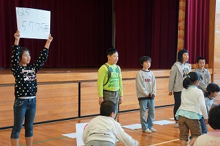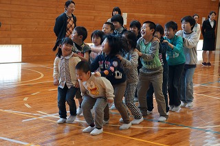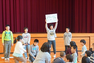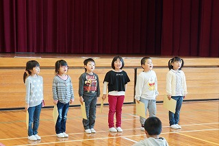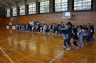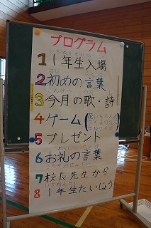 4限目に「1年生を迎える会」がありました。上級生全員が6人の入学をお祝いし、1年生に優しくする気持ちをもつことがねらいです。6年生が準備と運営を頑張りました。ゲームも工夫されていて、体育館中に明るい笑顔がいっぱい広がりました。1年生をあたたかく迎えると共に全校が仲良くなるとても素敵な集会となりました。