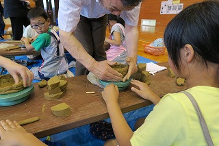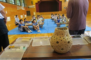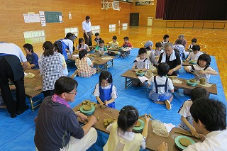 午後から4年生と5年生がランプシェード制作を体験しました。穴水町と能登町の陶芸クラブの皆さんに指導いただきました お陰様で子ども達は、最後まで集中して制作活動に励んでいました。子ども達の心には、素晴らしい貴重な思い出としてずっと残ることでしょう。