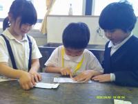 今年は、全学年、学習を生かして1年生と交流する時間を設定しています。3回目は2年生です。1年生は、2年生からのペンダントとぴょんぴょんかえるに大喜び。遊び方を教えてもらいながら2年生と楽しく交流しました。2年生、ありがとう。