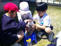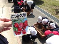 8日、1年生は2年生に手伝ってもらい、朝顔の種を植えました。1年生は大きく、きれいな花が咲くことを願いながら一生懸命植えていました。これから毎日水をやって、きれいな花を咲かせることを楽しみに大事に育ててほしいと思います。2年生もお手伝い、ありがとう。