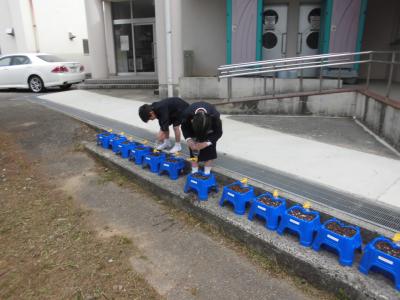 今日から1年生は、昨日植えた朝顔の鉢の水やりを始めました。ペットボトルの使い方が分からず困っていると、6年生男子が1年生に優しく教えていました。頼りになる6年生、いつもありがとう。
