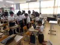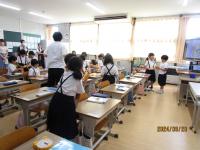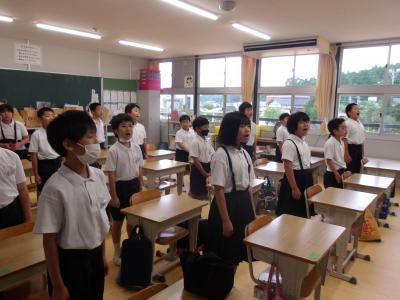 8月6日(火)今日は登校日です。各学級で平和に関する読み聞かせのあと、感想等を伝え合いました。今日の登校日でお世話になった中学校の校舎ともお別れです。8月29日の登校日からは、仮設校舎への登校となります。中学校の皆さん、本当にありがとうございました。