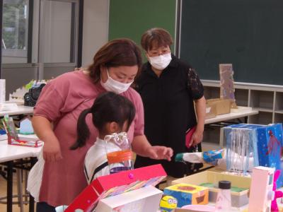 3日から6日まで、夏休みの図画工作や科学作品を公開しています。今年も子ども達の工夫した作品がたくさんありました。学校では各学級で見る機会を設定していますが、保護者の皆様にもぜひご覧いただけると嬉しいです。
