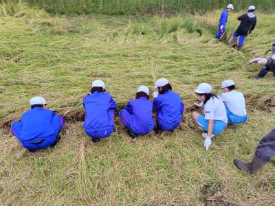 18日、5年生は、春に田植えをした田んぼで親子で稲刈りをしました。ほとんどの児童が初めてでしたが、徐々にカマの使い方にも慣れ、あっという間に稲刈りが終わりました。体験後は、稲刈りがこんなに大変なものだと思わなかったという感想が多く聞かれました。大変な状況の中、ご協力いただきました下唐川地区の皆さんに心より感謝申し上げます。