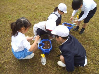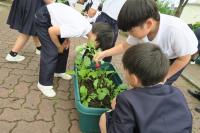 9日、1年生は朝顔の種をまきました。何もかもが初めての1年生。そんな1年生を助け、土の袋を持ったり、鉢植えを一緒に運んだりしてくれたのは2年生です。1年生もこれから朝顔のお世話をしながら、来年は1年生を助ける頼もしい2年生になってほしいと思います。