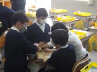 28日、中学校の家庭室をお借りして、5年生は家庭科の時間に野菜を「ゆでる」調理実習を実施しました。慣れない手つきで野菜をゆでたり、切ったりする顔は真剣そのものです。最後は自分達で調理した野菜の味をみんなでゆっくり楽しみながら味わいました。家でもこの経験を生かしてお手伝いしてくれるとうれしいです。