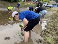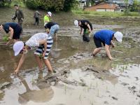 28日、5年生はふるさと学習として、田植え体験をしました。田植えをしたことがほとんどない子ども達ばかりでしたが、地元の皆様のご指導のおかけで徐々に慣れてきて一時間ほどで田植えを終えることができました。子ども達は、秋の稲刈りを楽しみにしています。被災して地域が大変な中、田植えにご協力いただいた下唐川地区の皆様に心より感謝申し上げます。