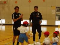 30日、1,2年生は日本サッカー協会のご協力をいただき、スポーツ教室を開催しました。子ども達は、元日本代表選手の皆さんのキックやリフティング等の技に盛り上がったり、一緒にボールを追いかけ、ゴールめがけてシュートしたりしながら楽しい時間を過ごしました。最後に、子ども達全員にサッカーボールなどたくさんのプレゼントもいただきました。楽しい時間をありがとうございました。