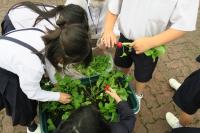 6日、2年生は、生活の栽培の学習で植えたラディッシュを収穫しました。一生懸命水やりしたり、観察したりしながら大切に育ててきた野菜を収穫し、大喜びの2年生でした。