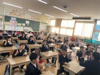 12日、3年生は岐阜県の和小学校とオンライン交流授業を行いました。今回は互いの地域の特色について交流しあいました。今回は、学校や地域の特色、特色ある食べ物やその由来などについて意見交流をしました。地域の特色を生かした独特な食べ物等に「なるほど」の声がたくさん聞かれ、いい交流ができました。3年生の皆さん、ありがとうございました。