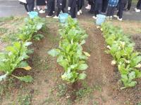 18日、2年生は生活科で育てていたかぶを収穫しました。観察や水やりなどを一生懸命していた2年生は、あまくておいしいかぶを家で食べるのを楽しみにしていました。よく頑張りました。
