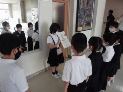 5月13日、2年生が1年生の学校探検のお世話をしてくれました。2年生は、絵や説明を工夫しながら、1年生に学校内を紹介しました。案内や説明を上手にこなす2年生に一年間の成長を感じました。