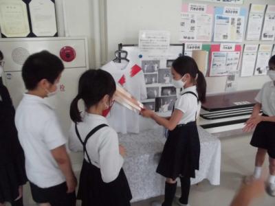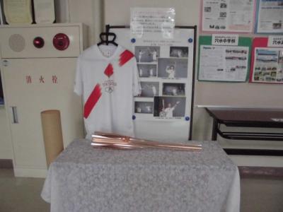 6月1日に開かれた県聖火リレー代替イベントに参加した穴水町の舞谷さんから、当日の聖火リレートーチとTシャツをおかりして学校に展示させていただきました。間近で聖火リレートーチを見たり、触ったり、先生から話を聞いたりすることで、オリンピック、パラリンピックへの理解を深める貴重な機会となりました。展示にご協力いただきました舞谷さん、本当にありがとうございました。