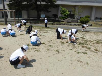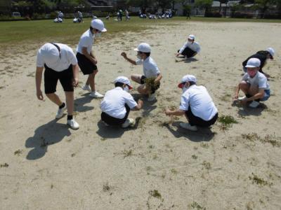 今年も毎日使う運動場の石ひらいや草むしりをする愛校日がスタートしました。昼休みの短時間を利用して、全学年が学期に一回行います。「愛校日だ!」と飛び出していく子ども達の姿が印象的なスタートとなりました。
