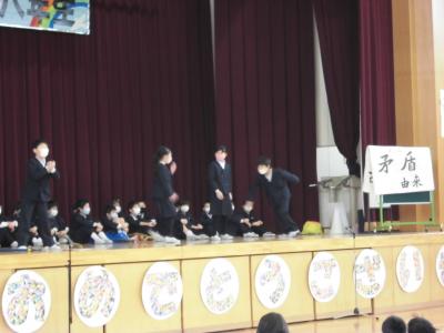 2月26日(金)6年生を送る会を開催しました。スローガン「みんなで協力して 6年生に最高のありがとうを伝えよう」のとおり、各学年で協力し、工夫した出し物で、リーダーとして頑張ってくれた6年生に感謝の気持ちを伝えました。最後の6年生のすばらしいステージと下級生への温かいメッセージには、本当に感動しました。「笑顔」いっぱい、「ありがとう」いっぱいの温かい会になりました。