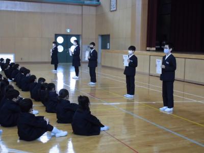 4月9日(金)児童会の認証式を行いました。認証式後、各委員長が大きな声で堂々と、委員会として頑張りたいこと、4月の活動目標を伝えてくれました。これからの活躍が楽しみです。