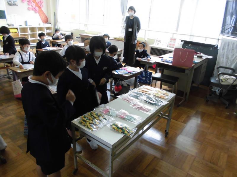2021年4月30日 14時22分4月30日、穴水町で洋裁店をしている長沢さんから、1年生全員に手作りマスクをいただきました。マスクの柄は人気アニメに関連したもので、子どもたちは大喜びでした。長沢さん、本当にありがとうございました。