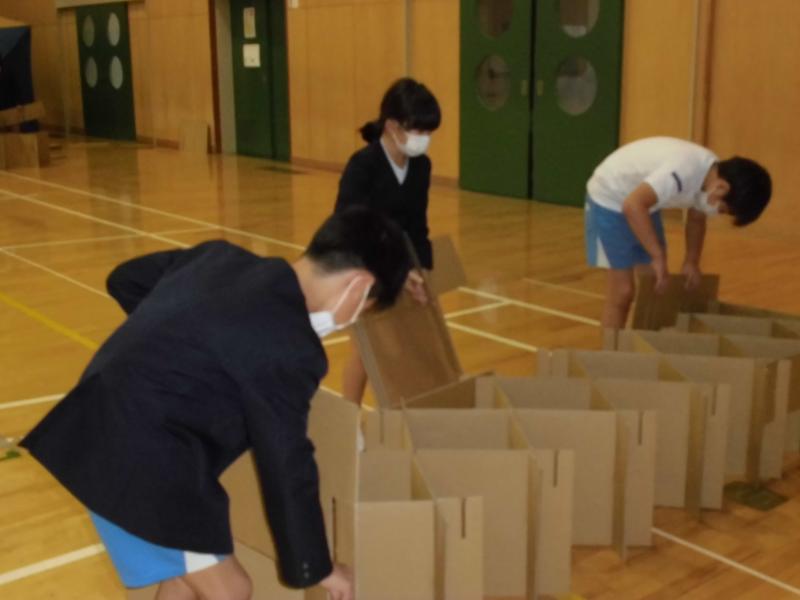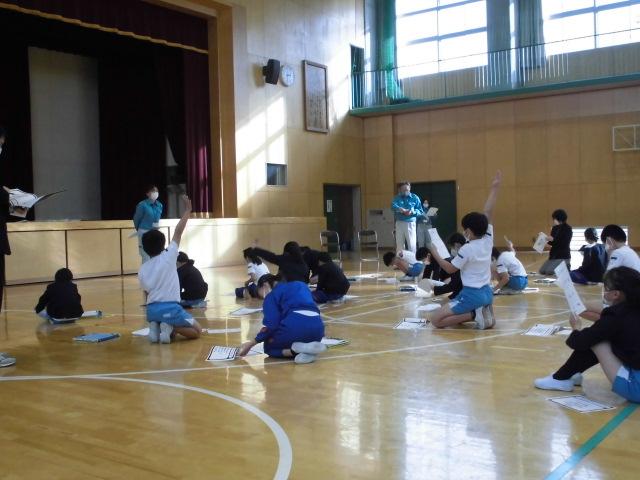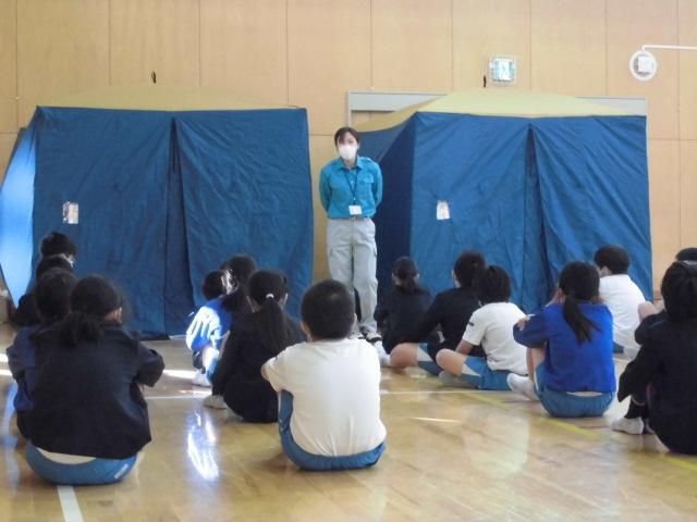 11月10日、町の管理課危機対策室の方々にご協力いただき、防災学習会を開催しました。対象は4年生です。4年生は「知る・考える・実践する」をテーマに、東日本大震災や能登半島地震、災害の備え、災害が起こった時にできることなどについて学んだり、簡易ベットやテントを体験したりして、防災について深く考える貴重な時間となりました。