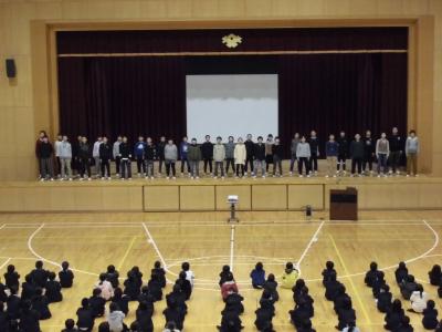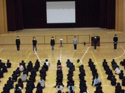 引き続き行われた全校集会では、2年生が学年発表を行いました。リズムを大切にしながら合奏とダンスを組み合わせたパプリカは、見ている私たちを元気にしてくれました。